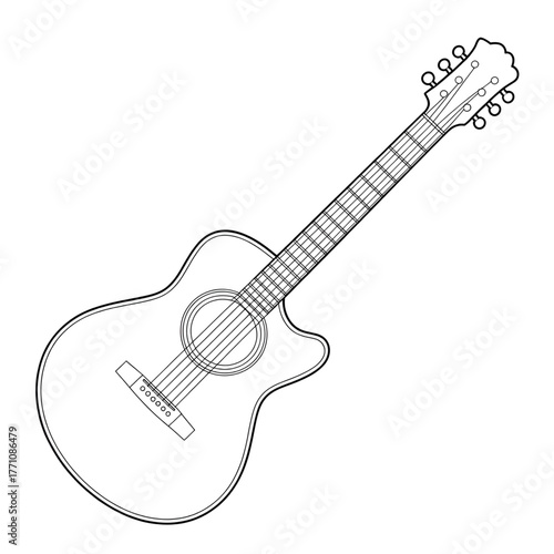 © Samsul, Naklejka premium acoustic guitar isolated on white coloring page
