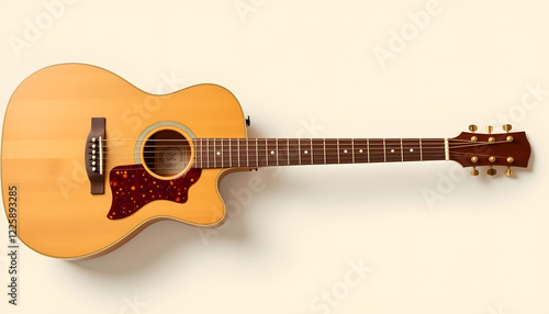 © Nataly, Obraz premium Acoustic guitar on plain background