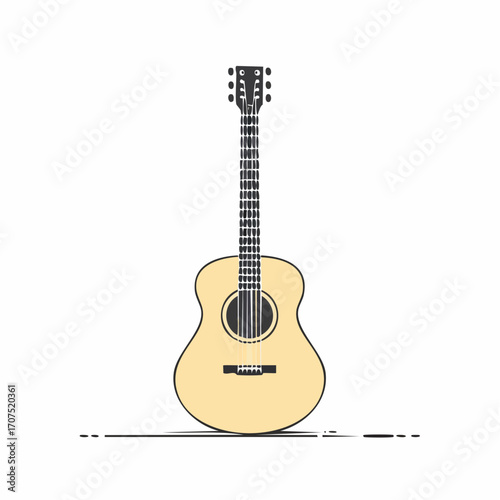 Obraz premium Acoustic guitar stands upright against a white backdrop, showcasing its...