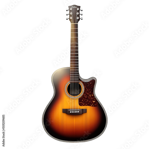 © Sabad, Obraz premium Acoustic Guitar Vector Art Sunburst Finish Musical Instrument Strings on transparent background