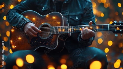 © abdul kahfi, Obraz premium Acoustic Guitarist in a Magical Setting