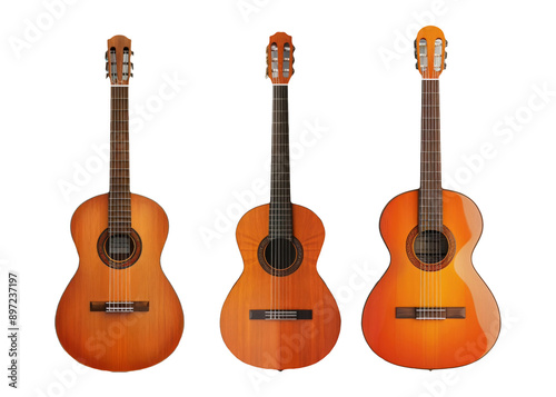 © PRI, Fototapeta premium Acoustic Guitars Collection Isolated on Transparent Background