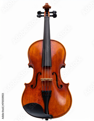 © Pure Imagination, Fototapeta premium Acoustic Violin Musical Instrument in Detail with Wood Grain and Glossy Finish on White Background