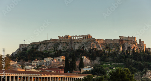 © Rawf8, Fototapeta premium Acropolis of Athens Greece rock and Parthenon on blue sky background in the evening.
