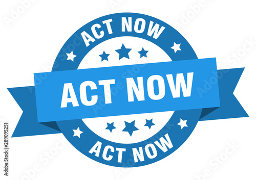 Obraz premium act now ribbon. act now round blue sign. act now