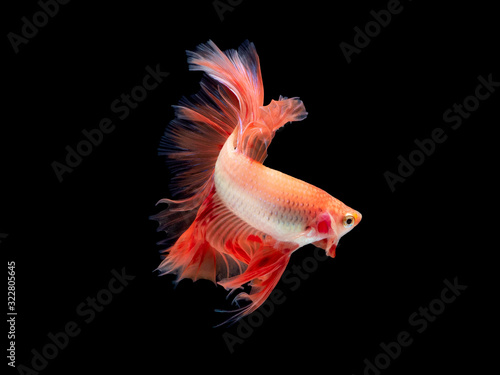 © ritfuse, Obraz premium Action and movement of Thai fighting fish on a black background