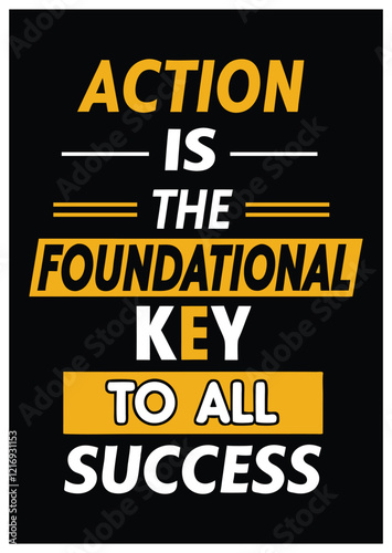 © Hafiz283, Fototapeta premium Action is the foundational key to all success motivational quote and stylish font for tshirtork