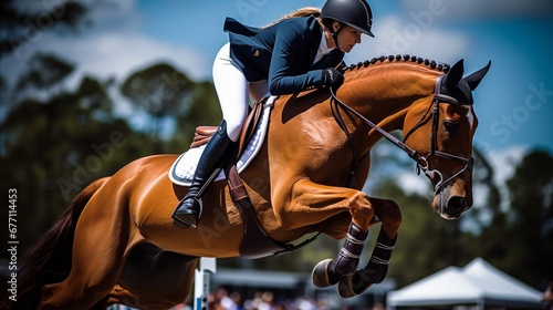 Fototapeta premium Action-Packed Equestrian Show Jumping with Horse and Rider