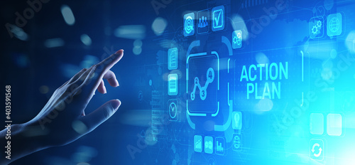 Obraz premium Action plan business strategy development concept on virtual screen.