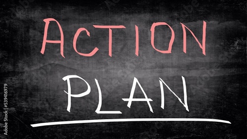 © Krasimira Nevenova, Obraz premium Action plan handwritten on blackboard