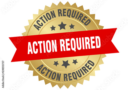 Obraz premium action required. action required round red and gold label isolated on transparent background