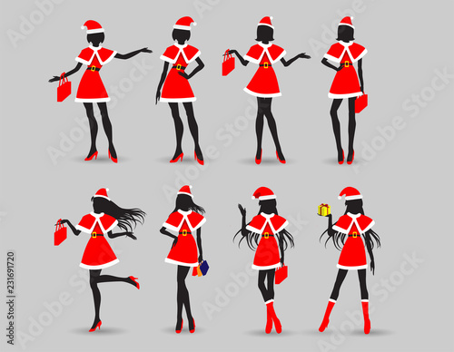 © TogsDesign, Naklejka premium action women in santa suit,merry christmas,happy new year.