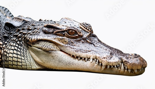 © netsay, Fototapeta premium Actionpacked Close Up of a Crocodiles Intense Stare Against a White Backdrop, Capturing the Power and Majesty of Natures Apex Predator