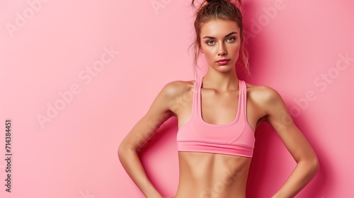 Obraz premium Active and Attractive - Confident Young Woman in Pink Sportswear on Pink Backdrop