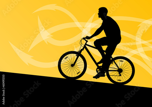 Fototapeta premium Active man cyclist bicycle rider in abstract arrow line landscap