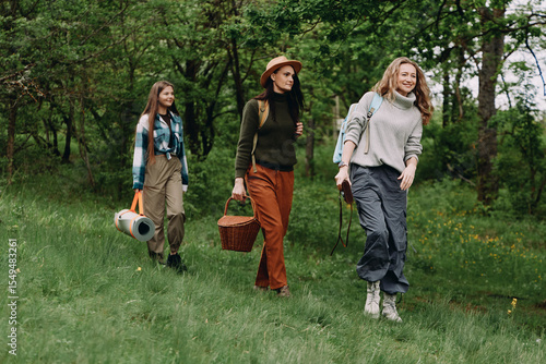 © SHOTPRIME STUDIO, Obraz premium Active middle age woman leading community hike in green forest, promoting fitness, wellbeing, and healthy lifestyle among older women in nature, enjoying wellness and longevity outdoors.
