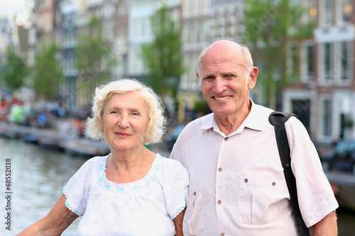 © cromary, Fototapeta premium Active senior couple enjoying canal views in Amsterdam