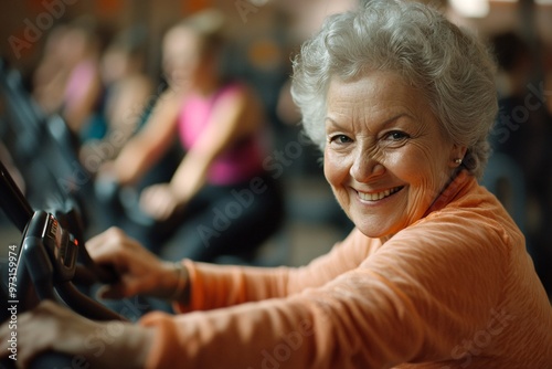 Fototapeta premium Active seniors enjoying a group workout session at a fitness center in the...