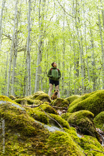 © BUDDHA, Naklejka premium Active young woman going hiking with dog