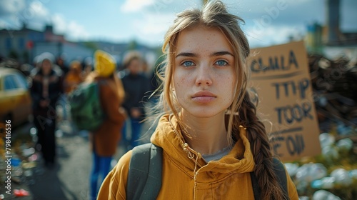 © Jennifer, Fototapeta premium Activism in Action: Portrait of a Young Woman Leading the Charge Against Plastic Pollution