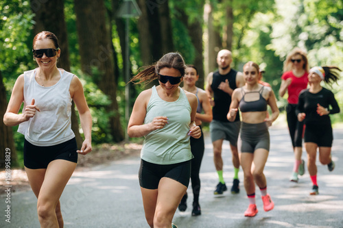 © standret, Obraz premium Activity, healthcare conception. Group of runners are together outdoors