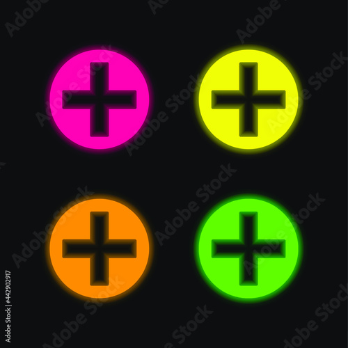 Fototapeta premium Add Button Circle four color glowing neon vector icon