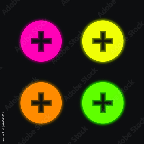 © LIGHTFIELD STUDIOS, Fototapeta premium Add Button four color glowing neon vector icon