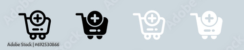 © Yasir Design, Obraz premium Add cart icon set in black and white. Checkout signs vector illustration.