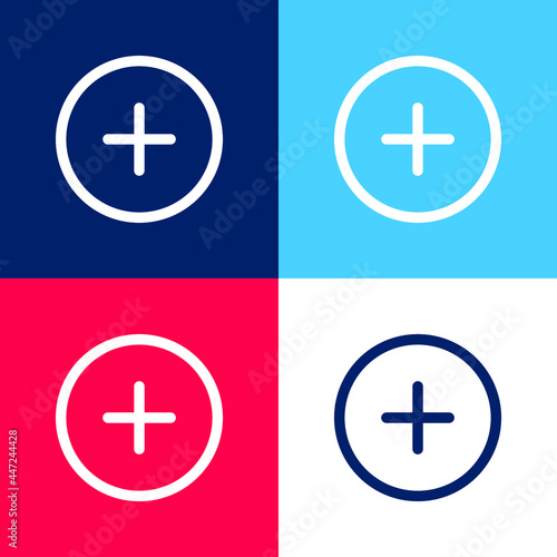 Obraz premium Add Circular Outlined Button blue and red four color minimal icon set