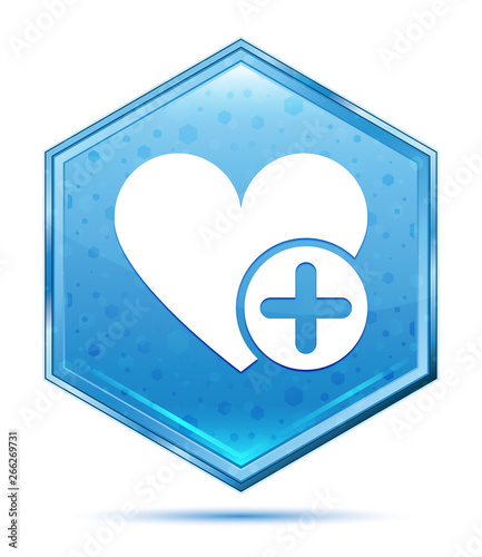 © Bluejayy, Fototapeta premium Add favorite heart icon crystal blue hexagon button