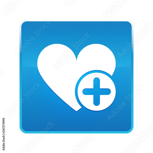 Fototapeta premium Add favorite heart icon shiny blue square button