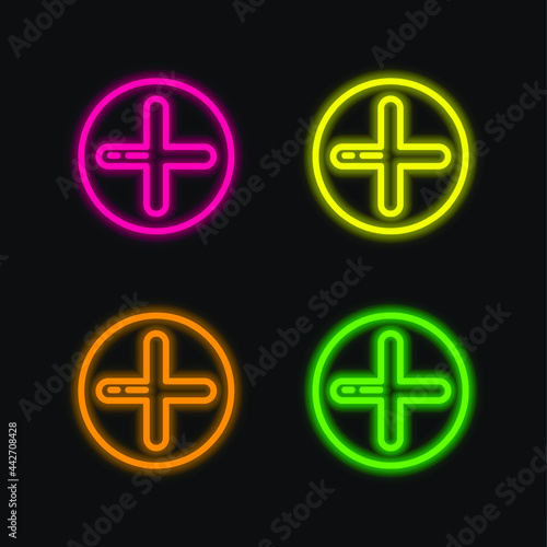 Fototapeta premium Add four color glowing neon vector icon
