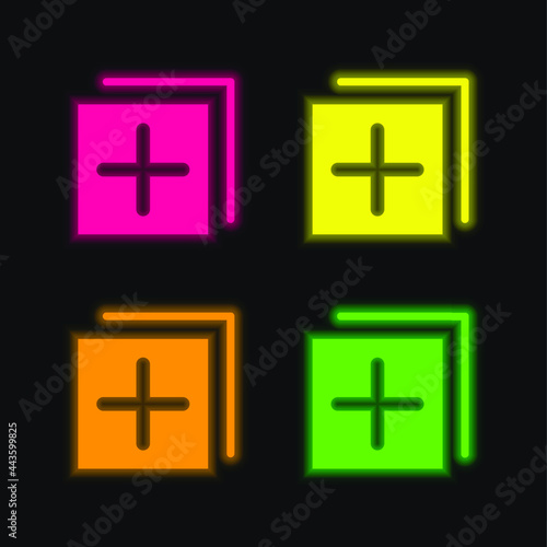 Fototapeta premium Add four color glowing neon vector icon