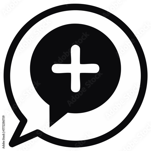 © Анатолій Трачук, Obraz premium Add icon in speech bubble, simple black and white add symbol design concept.