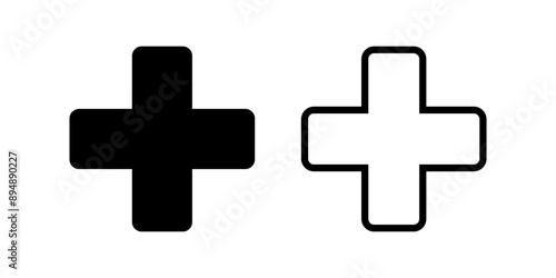 © Kosong, Fototapeta premium Add icon set. Plus sign. Flat illustration of vector icon on white background