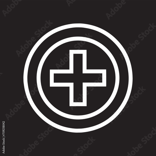 © IFDesigns, Obraz premium Add icon vector. Plus icon sign symbol vector. Medical cross vector icon illustration isolated on black background