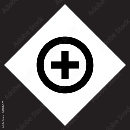 Fototapeta premium Add icon vector. Plus logo design. Medical cross vector icon illustration in rhombus isolated on black background