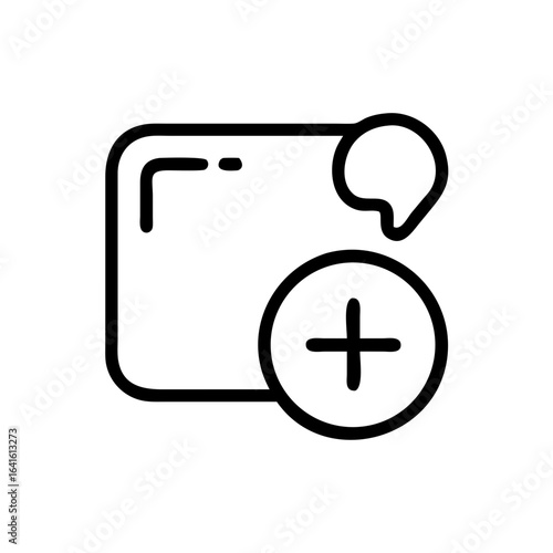 Fototapeta premium Add new comment or message line icon with a plus symbol. Simple vector for creating a new post or reply on a platform.