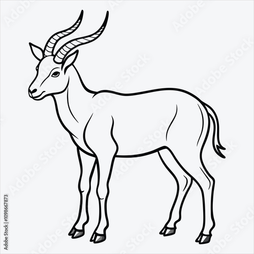 © lokshmon, Fototapeta premium Addax line art White background illustration Generative Ai