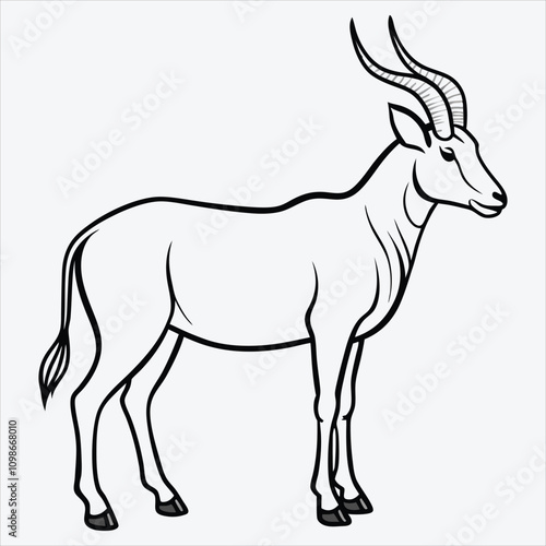 © lokshmon, Fototapeta premium Addax line art White background illustration Generative Ai