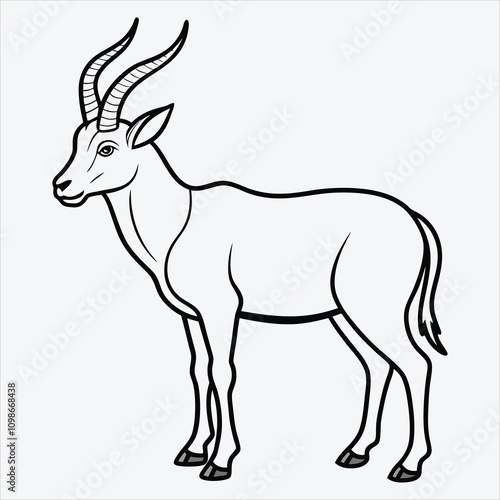© lokshmon, Fototapeta premium Addax line art White background illustration Generative Ai