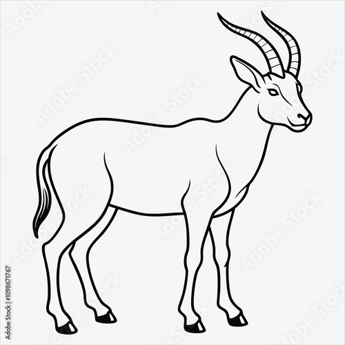 © lokshmon, Fototapeta premium Addax line art White background illustration Generative Ai