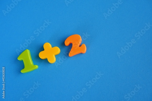 © Eva, Obraz premium adding one and two on blue background