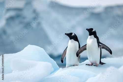 Fototapeta premium Adelie penguin (Pygoscelis adeliae) on iceberg. Graham Passage, Antarctic...