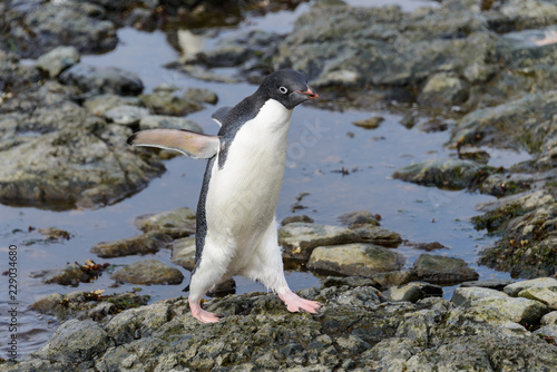 © Alexey Seafarer, Naklejka premium Adelie penguin standing on beach in Antarctica