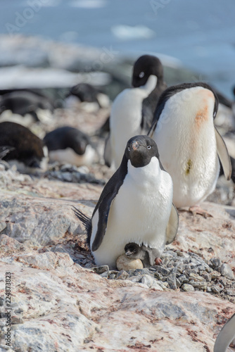 Naklejka premium Adelie penguins on beach