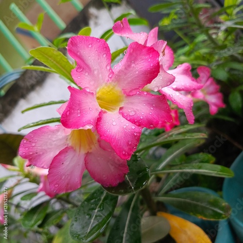 Fototapeta premium Adenium or Japanese frangipani is an ornamental plant that has brightly...