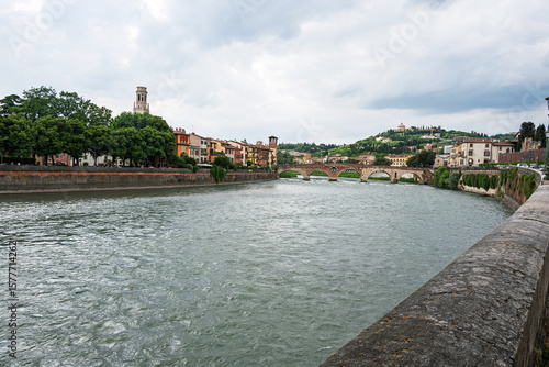 Obraz premium Adige river and Ponte di Castelvecchio in Verona, Italy.