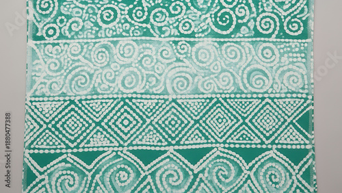 © Natalia, Obraz premium Adire fabric with vibrant patterns and green tones showcasing traditional textile art