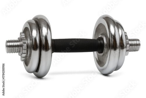 Fototapeta premium Adjustable chrome barbell with weight plates for fitness, strength training,...